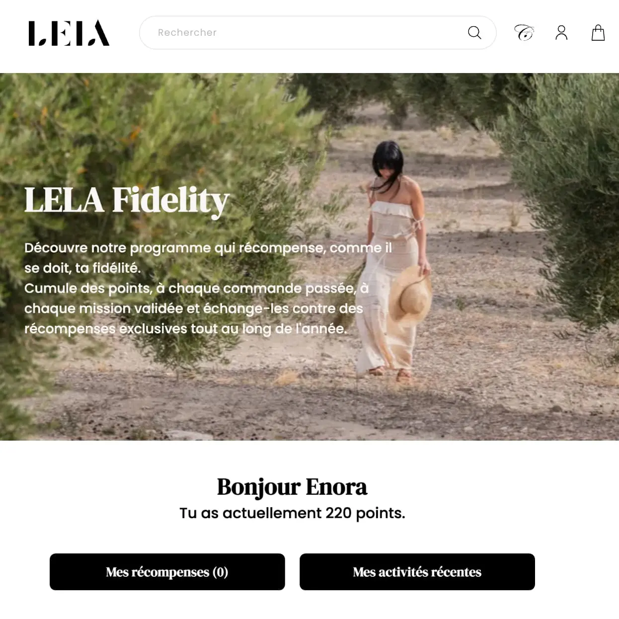 La lealtad se basa en 1€ gastado = 1 punto, enriquecido con una capa relacional. Los miembros ganan puntos al suscribirse a boletines informativos, dejar reseñas, seguir en las redes sociales, publicar publicaciones o publicaciones y compartir contenido de temporada (Día de San Valentín, Día de la Madre...).